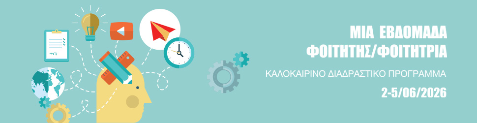 Δήλωσε συμμετοχή τώρα στο πρόγραμμα «Μια εβδομάδα φοιτητής/φοιτήτρια» για να γνωρίσεις από κοντά τον χώρο της τριτοβάθμιας εκπαίδευσης και να ενημερωθείς σχετικά με τον κλάδο σου και το ακαδημαϊκό μονοπάτι που σκέφτεσαι να ακολουθήσεις.